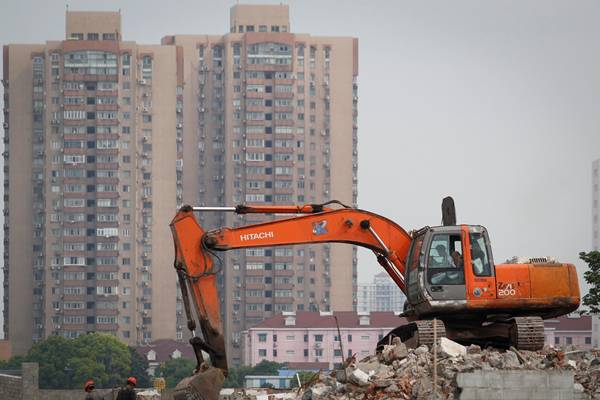 2015年5月,上海杨浦区腾越路,一辆挖掘机正在工地施工。高征 澎湃资料图