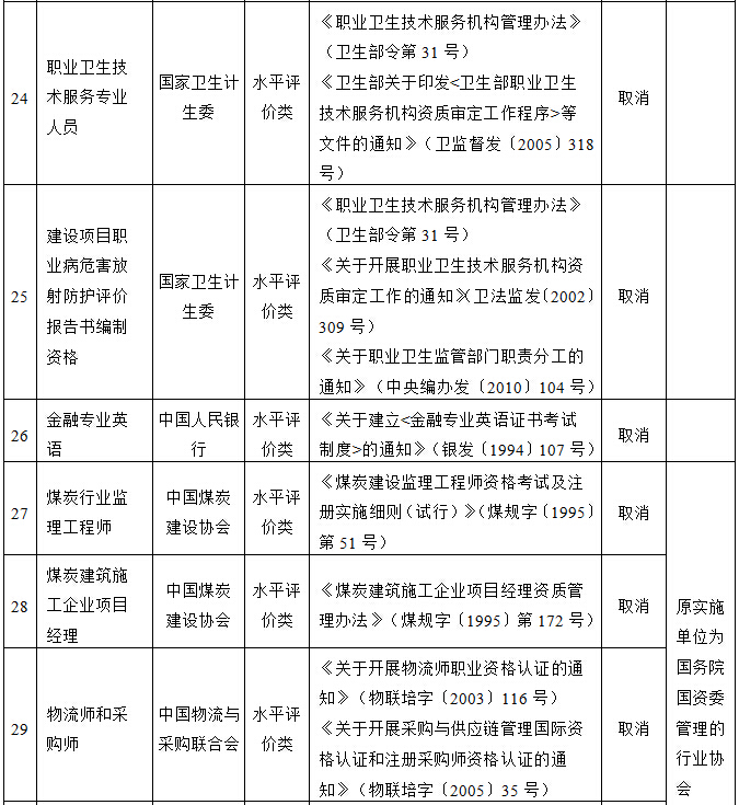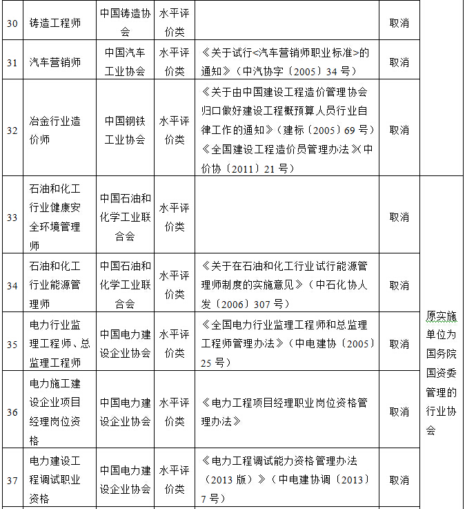 附件:国务院决定取消的职业资格许可和认定事项目录(共计61项)
