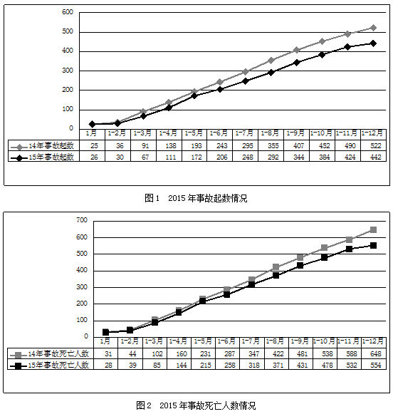 2015年,全国共发生房屋市政工程生产安全事故442起、死亡554人,比去年同期事故起数减少80起、死亡人数减少94人(见图1、图2),同比分别下降15.33%和14.51%。