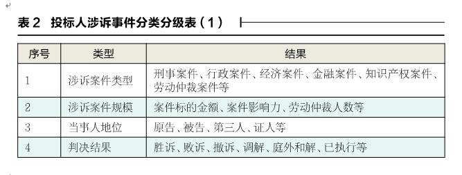 因此,分析清楚要求提供有无涉诉证明材料的目的后,一方面投标人可以有的放矢地去检索案件并出具证明文件,另一方面招标人也可以区分对待不同的涉诉案件,分类分级进行评估,具体分类分级的影响因素如表2中所示。