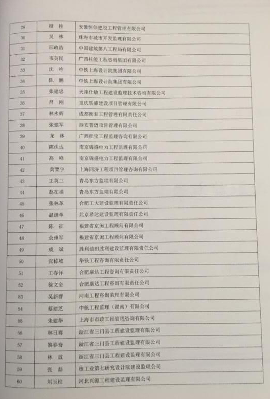 2016年度全国优秀总监理工程师名单公示